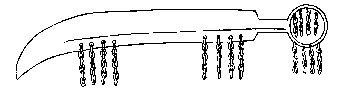 哈尔马力[Halmari],汉译“响刀”。民间俗称“哈马刀”,亦称“神刀”。金属或木制。在刀背和刀把上串联若干金属小环,萨满舞动时“唏哩哗啦”作响。 它是萨满趋魔逐妖的武器,当然,由于萨满所要对付的对象是虚幻的,所以他们并不是使用刀之刃来“砍杀”,而是用刀之响来“惊吓”。