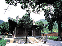 初祖庵位于少林寺西北2公里处的五乳峰下,是为纪念禅宗祖师达摩而修建的,现存有一殿、两亭和千佛阁等建筑。初祖庵大殿建于北宋宣和七年(公元1125年),面阔和进深均为3间,单檐歇山式琉璃瓦剪边顶,殿内的木构梁架和斗拱都具有典型的宋代风格。大殿的前檐立有4根石柱,柱面浮雕有海石榴、卷草、飞禽和伎乐等图案。殿内有石柱4根,柱面浮雕有神王、盘龙和嫔迦等。殿内明间置佛龛一座。大殿东南有古柏一株,相传为唐初禅宗六祖慧能所植。庵内还保存有书法家黄庭坚、蔡卞等人书写的赞颂初祖达摩的碑石40余通。初祖庵为研究宋代至清代的佛教建筑、雕刻和书法等方面,提供了重要参考资料。