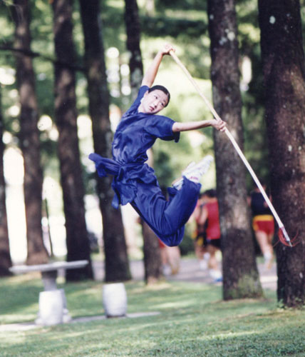 枪为武术常用器械之一,被称为长兵之帅。由上古矛戈发展演变而成,宋代以后品种繁多。枪术历史悠久,主要动作为拦、拿、扎。《隋书?经籍志》所载《马槊谱》就是介绍枪术的专著,估计当时已有套路训练了。宋代枪术更加精进和普及,著名的杨家梨花枪,就是南宋嘉定四年(1211年)山东红袄军起义者杨妙真所创。戚继光《纪效新书》介绍此枪法说:“杨家之法,手执枪根,出枪甚长,且有虚实,有奇正;有虚虚实实,有奇奇正正;其进锐,其退速,其势险,其节短;不动如山,动如雷震,故曰二十年梨花枪无敌手。”明何良臣《陈记》、吴殳《手臂录》对枪术作了系统的分析和总结,并对各家流派作了介绍。枪术除单练之外,也可与其他武器对练,如大刀进枪、剑进枪、三节棍进枪等。