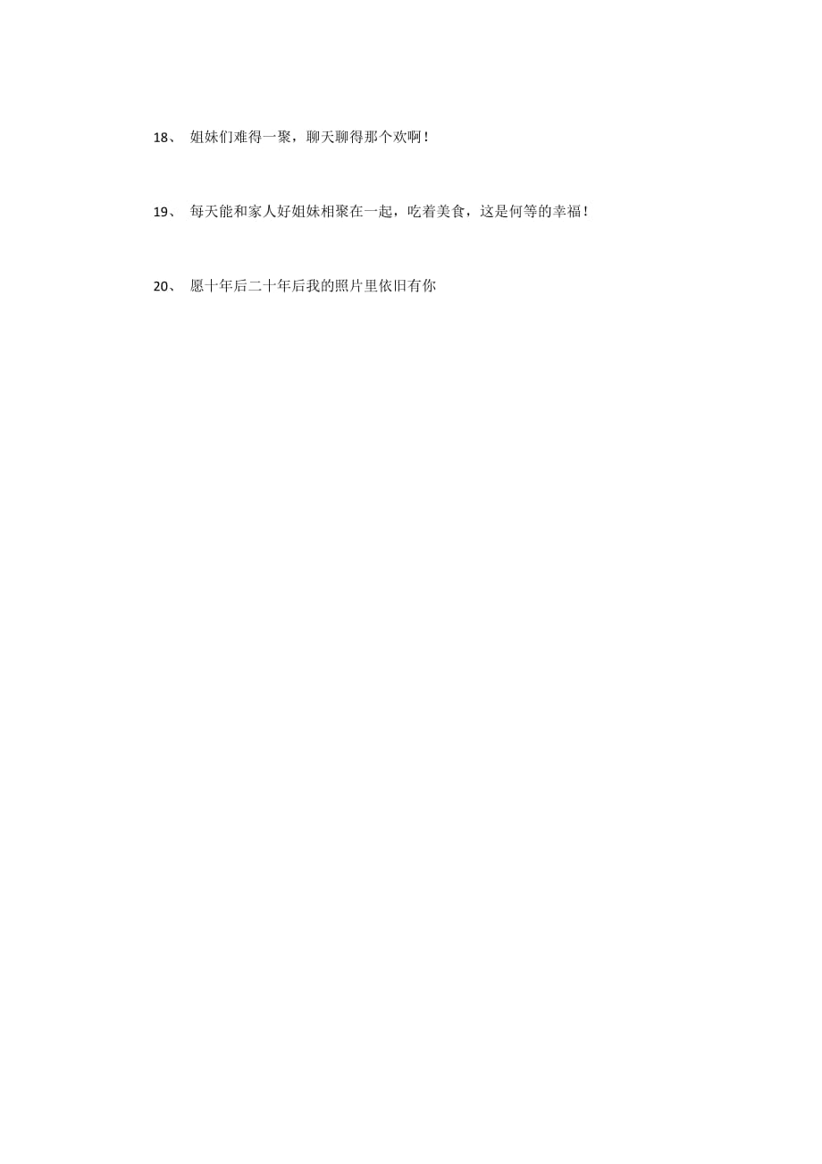 小编整理了一些关于祝姐妹聚会开心的句子 姐妹们聚会开心语短句,请大家欣赏,希望大家喜欢 1爱人永远敌不过闺蜜,因为那是我用一生的感情交的姐妹 2宝贝儿,今天是世界姐妹日,发。12难得一聚的,四姐妹,祝妹妹们新年工作顺利,学习更上一层楼,祝小弟弟新年开朗活泼点,不要太缅甸,我爱你们 13牵挂弹指二十年,今天我们终相聚想说的话有很多,想感谢的人也很。