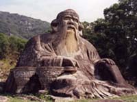 老君造像高5.l米,厚7.2米,宽7.3米,是福建难得的宋代道教巨型石刻佳作。该像以一块天然的岩石略施雕琢而成的。老君左手依膝,右手凭几,两眼平视,双耳垂肩,脸含笑容,苍髯飞动,头、额、眼、苍须等细部雕刻十分精致、毫不夸张;衣裙分明,线条柔软而有力,整个造像生动、逼真地表现了这个高大的石刻老人慈祥、安乐的神态,造像的艺术水平很高。(国家文物局)