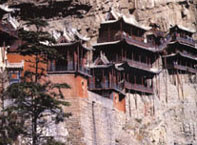 恒山是中国著名的五岳名山之一,号称“北岳”。悬空寺就建在恒山脚下的金龙峡上,距大同市约80公里。根据《恒山志》的记载,悬空寺始建于北魏晚期(约公元六世纪),据说是北魏时一位叫了然的和尚所建,距今已有1400多年的历史,后经历代多次重修,具有了相当的规模,是中国现存极为罕见的一座高空建筑,被誉为建在绝壁上的“危楼”。