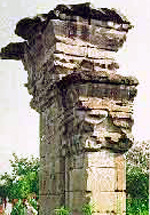 石阙是用六层条石砌筑而成的仿木结构建筑,两个子阙的形制与主阙大略相同。阙盖的四角还刻有青龙、白虎、朱雀、玄武等动物纹饰。栏额上浮雕的主要内容有车骑出行图,场面十分宏伟。东西面各雕刻有一个饕餮纹饰,形象狰狞;四角刻有力士。阙的东壁刻有狩猎图,群兽奔逃,有执竺托鹰人物,有中箭的野鹿,猎人捕兽图等,场面十分形象、逼真。(国家文物局)