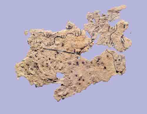 纸地图,这张地图所用的纸是目前所知世界上最早的纸,甘肃省天水市放马滩5号汉墓出土(存甘肃省博物馆)