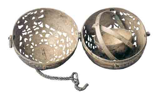 内有平衡环的银薰球,唐代(618——907),西安沙坡村出土(存陕西省博物馆)