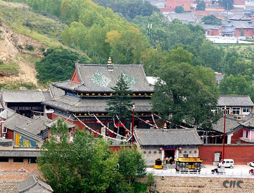 殊像寺在五台山台怀慎杨林街西南里许。五台山五大禅处之一。因寺内供文殊像而得名。始建于唐,元诞右年间重建,后毁于火,明成化二十三年(1487年)再建。山门,天王殿为前列,廊庑配殿为两翼,禅堂方丈室居后,正中建文殊阁五楹及钟鼓二楼。僧舍厩厨俱备。阁内塑像完成于弘治九年(1946年),明万历时曾局部修补。文殊阁宽五间,深四间,重檐九脊顶,檐下斗拱密致,檐上三彩琉璃剪边,阁内佛寺宽大,文殊驾驭于狮背,高约9米。龛背而塑三世佛(药师,释迦,弥驼),两侧为悬塑五百罗汉。全部塑像皆为明物,形象秀美,工艺精巧。佛像居于龛背面倒座之上,颇为特殊。