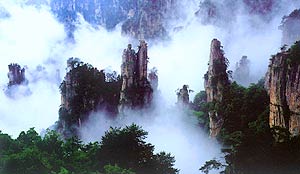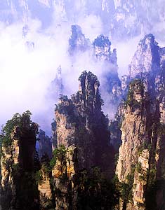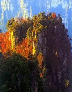张家界武陵源砂岩峰林地貌代表了地球上一种独特的地貌形态和自然地理特征。发育于泥盆系云台观组和黄家磴组,峰林集中分布区面积86平方公里,它是在特定的地质构造部位、特定的新构造运动和外力作用条件下形成的一种举世罕见的独特地貌。在园区内有3000多座拔地而起的石涯,其中高度超过200米的有1000多座,金鞭岩竟高达350米,个体形态有方山、台地、峰墙、峰丛、峰林、石门、天生桥及峡谷、嶂谷等。公园以世界上独一无二的砂岩峰林地貌景观为核心、以岩溶地貌景观为衬托,兼有成型地质剖面、特殊化石产地等大量地质遗迹,构成独具特色的砂岩峰林地貌组合景观。公园内另一富有特色的地貌是岩溶洞穴地貌。地貌形态有漏斗、洼地、溶丘、石芽、石林、穿洞、溶洞、伏流、暗河等。溶洞以黄龙洞为典型,洞内景观引人入胜,洞穴迷宫、卷曲状钟乳石、鹅管、歪斜钟乳石,以及色彩绚丽晶莹剔透、形态各异、精妙绝伦的滴水石,如石钟乳、石笋、石柱、石瀑、石幔、石帘、石花等,