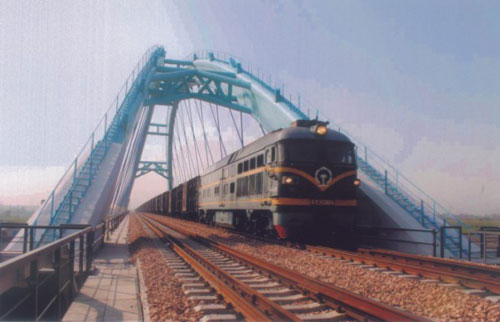 大桥全长1170m,主桥结构为跨度112m的尼尔森体系下承提篮式钢管拱砼系杆拱桥。该结构为我国铁路施工首座吊挂现浇梁结构,因其技术含量高,填补了国内空白。由中铁大桥局承建。