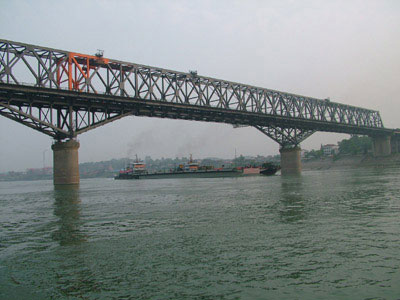 枝城长江大桥位于湖北省宜都县的焦枝铁路线上,为公路铁路两用的连续刚桁梁桥。由中铁大桥局承建。