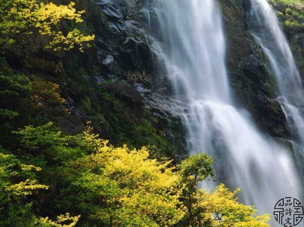 影落明湖青黛光,金阙前开二峰长,银河倒挂三石梁。