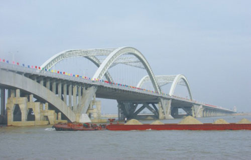 由中铁大桥局承建。南昌生m大桥全长3880m,宽35m,其中主跨为2×228m钢管系杆拱,位居国内前列。