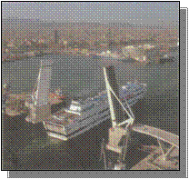 这是一座十分新颖的提升桥,活动跨长为120m,造型美观,在2006年已完工。
