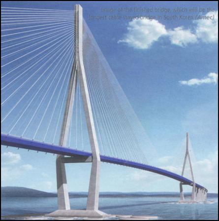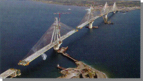 希腊的克林斯桥(Corinth)是一座修建在地震区的钢斜拉桥,其建桥技术十分新颖。将是今后建桥的新方向——即采用工厂化、机械化、预制化的方式施工。跨度达560m。