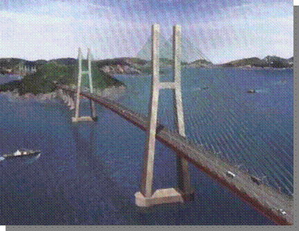 是模仿西班牙埃布罗桥和它相似的桥型,可见日本的模仿意识是很强的。跨度145m,于2003年建成。