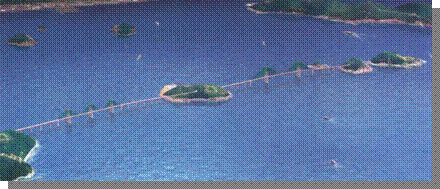 巴西的巴拉那湖桥(Parana Lake Bridge)是一座造型奇特的钢拱桥,十分美观。跨度为3×240m。