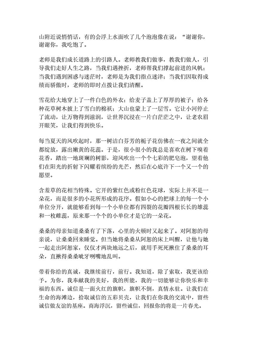 美段摘抄简短四年级
