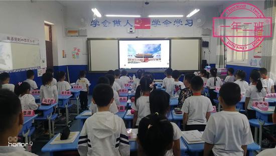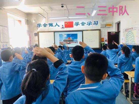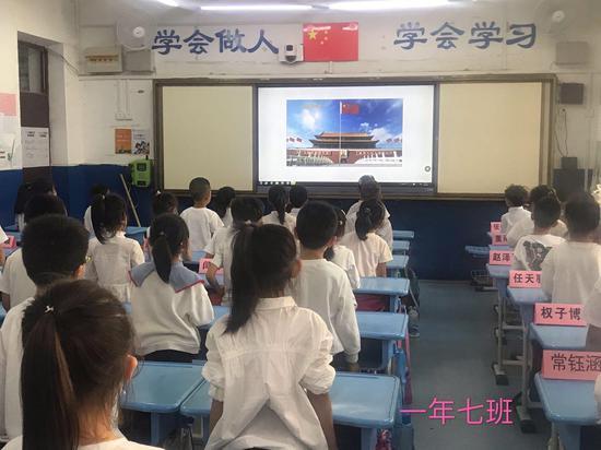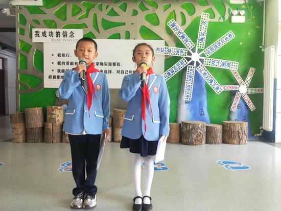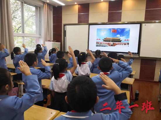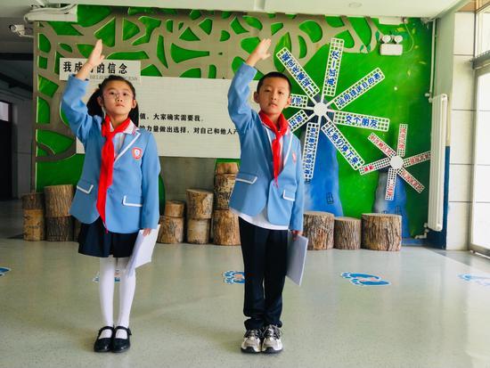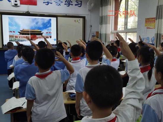 校红领巾广播站主持人段佳钰、郝锡琛同学主持了此次升旗仪式。升国旗、奏国歌。表达我们对老师深深的敬意。