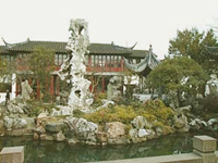 五峰仙馆是全国最大的厅堂,梁柱以楠木构造,故而又称楠木厅,面阔五间,硬山造,厅内陈设典雅,厅前五峰林立,仿佛面对丘壑,是苏州各园湖石峰中规模最大的一处;馆后的庭院中有山、有池、有廊,小巧别致。
