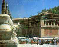 寺内设有显宗、密宗、天文、医学四大学院,显、密两宗学院是高级僧侣专门研究佛经教义的地方,天文、医学两院是培养藏、蒙古族优秀科技人材的学府。整个建筑群是藏汉民族形式的结合,布局严谨、建筑巍峨、金碧辉煌、气势宏伟,独具风格。
