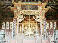 殿内部的顶棚没有装饰天花,只在望板上施以蓝地白云,给人一种晴空万里之感,也显得十分的高大典雅,殿的梁、檩、椽、枋彩绘云龙、仙桃等,殿堂的正中,还搭造了一座“凸”字形堂陛,堂陛前,有金龙蟠柱,姿态生动,雕工精细,显得栩栩如生。殿内放置的屏风、宝座,以及台墀上放置的日晷、嘉量等器物都是乾隆时设置的。此殿是皇太极日常处理军政要务和接见外国使臣、边疆少数民族代表的地方,天聪十年(1636年)后金改国号为大清的大典也是在此举行的。清军入关后,清王朝移都北京,历朝的皇帝东巡时,也都把此处作为临时的听政之所。