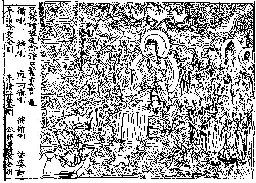 这本书是世界上现存的最早的雕板印刷书籍。图画也是雕刻在一块整版上的,也许是世界上最早的版画。