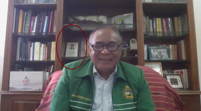 观察者网注意到,东帝汶重建全国大会党副主席、前驻华大使贲迪拓·弗雷伊塔斯在接受记者线上采访时,背后书架上的显要位置摆放着《习近平谈治国理政》一书。