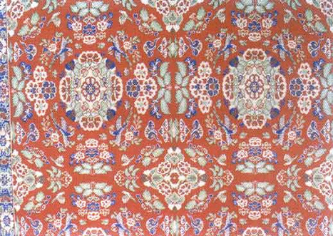 中西亚文明对中国丝绸的纹饰图案影响更加显著。在蒙古诺音乌拉发现的汉代丝织品上,有一匹有翼兽。新疆民丰东汉墓出土的蓝印花布上,既有印度犍陀罗风格的半裸式菩萨像,又有中国传统龙纹。在尼雅(今新疆民丰县城以北150公里)遗址出土的东汉绮,上面则有西域常见的葡萄纹。随着佛教的传入,忍冬纹、莲花纹、联珠对鸟、对狮纹等逐渐流行起来,在唐代更是大行其道。那些忍冬纹以对称、均衡、动静结合等手法,组成各种形状的边饰,或者变形为藤蔓、缠枝,与莲花、联珠纹等都具有明显的波斯萨珊王朝艺术风格。青海都兰县就出土过一批唐代文字锦,为波斯婆罗钵文字,意为“王中之王,伟大的、光荣的”,带有明显的异域文化特点。而本身来源于西域在唐代流行的卷草缠枝花卉纹,由于大唐帝国对当时东西方的强大影响力,也跟中国传统服饰被称为“唐服”一样,被特称为“唐草纹”。