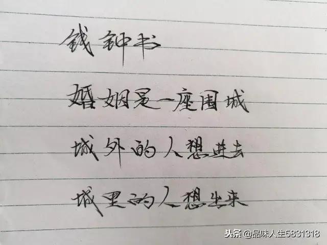 10围在城里的人想逃出来,城外的人想冲进去,对婚姻也罢,职业也罢,(游戏也罢),人生的愿望大都如此。
