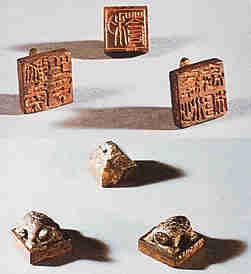 印章在先秦时就有,一般只有几个字,表示姓名,官职或机构。印文均刻成反体,有阴文、阳文之别。在纸没有出现之前,公文或书信都写在简牍上,写好之后,用绳扎好,在结扎处放粘性泥封结,将印章盖在泥上,称为泥封,泥封就是在泥上印刷,这是当时保密的一种手段。纸张出现之后,泥封演变为纸封,在几张公文纸的接缝处或公文纸袋的封口处盖印。据记载在北齐时(公元550~577年)有人把用于公文纸盖印的印章作得很大,很像一块小小的雕刻版了。