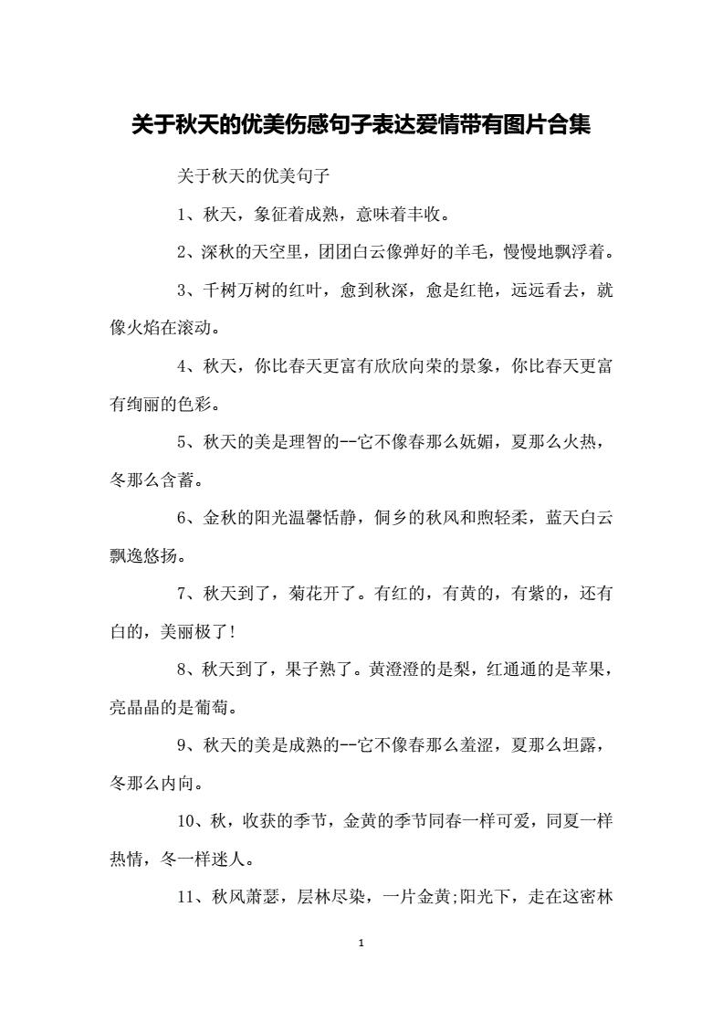 2019年12月5日 1秋风瑟瑟,树叶零乱,凄凉片片,到处弥漫,心也随着欲发的伤感,突然发现,秋天是个伤感的季节 2在这个深秋,我看到的是秋天的多变既看到了秋。2017年3月22日在这个深秋,我看到的是秋天的多变既看到了秋天的收获,又看到了秋天的无奈,也看到了秋天的迷惘,更多的是看到秋天的伤感 10不知不觉又到了秋天。2020年8月17日秋天的伤感句子 1又是一个落叶飘零的季节,飘落在秋风里的叶子总是挂满着忧伤是不是当叶子泛黄枯萎了就会飘落下来,那些散了一地的忧伤显得那么的苍。