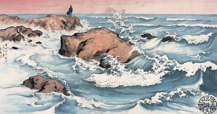 东临碣石,以观沧海。水何澹澹,山岛竦峙,头二句点明观沧海的位置:诗人登上碣石山顶,居高临海,视野寥廓,大海的壮阔景象尽收眼底。以下十句描写,概由此拓展而来。水何澹澹,山岛竦峙是望海初得的大致印象,有点像绘画的粗线条。澹澹,形容大海水面浩淼的样子;何,何其,今言多么,是叹美之词。澹澹而加叹美,那沧海的辽阔苍茫气象便可想而知了。在这水波澹澹的海上,最先映入眼帘的是那突兀耸立的山岛,它们点缀在平阔的海面上,使大海显得神奇、壮观。这两笔写出了大海远景的一般轮廓,下面再层层深入描写。