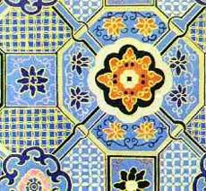 匣锦用真丝与少量纱线混合织成,图案连续对称,多用于书画的立轴、屏条的装裱。