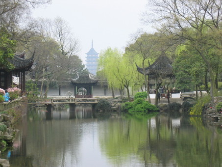就跟中国的建筑少直线一样,园林也处处表现了对曲线的偏爱,所谓曲折而自由的布局,在谋篇布局的匠心上也就有了一个方向,像江南的一些私家小园林,幽深曲折,“景贵乎深,不曲不深”,也就是绝不像说明文似的能让你一眼看到底,它不喜欢直白,它讲求遮、漏、透,适当地阻隔一下视线,或是故意山重水复地拐弯向前,沿着水、沿着走廊,一点一点地将人的心情摊伸拉长, 这样,每前进一步,只能隐隐约约地看到园景的一角,几经曲折,才能见到园内山池亭阁的全貌。