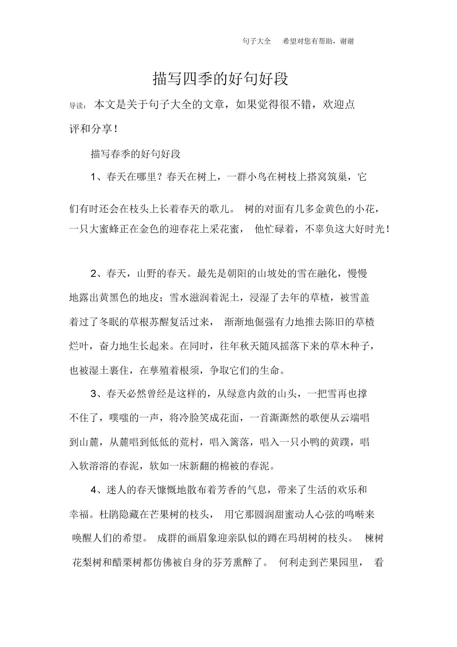 9、夏天是绿色的。不信你走进我们的学校看看,你会发现校园被一片绿色笼罩了:大树小树绿绿的,草地也是绿绿的。榕树高大挺拔,抬头仰望,一树鲜绿的叶子在阳光下闪着光,展现出无穷的生机。