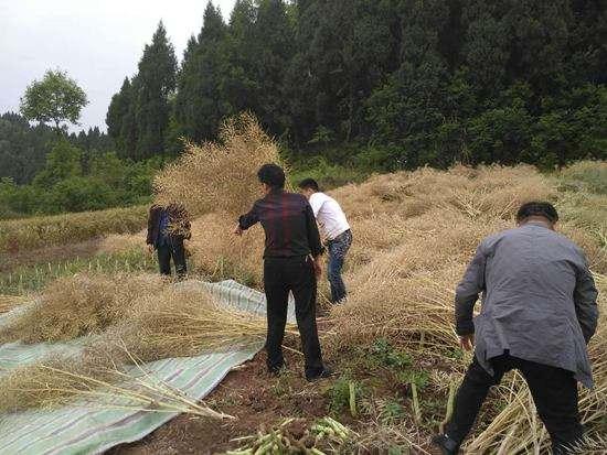 对坐办公室的人来说,五月初的温度并不算高,但在田地里劳作的人,却常常被晒得汗流浃背,异常辛苦。父母一早便带着一把草镰刀下地,舞动手里的镰刀,收割菜萁。在八九点之后便不能再收割,因为油菜籽的荚较薄,太阳一晒,成熟的荚轻轻一碰,便会张开,油菜籽会落在地里。