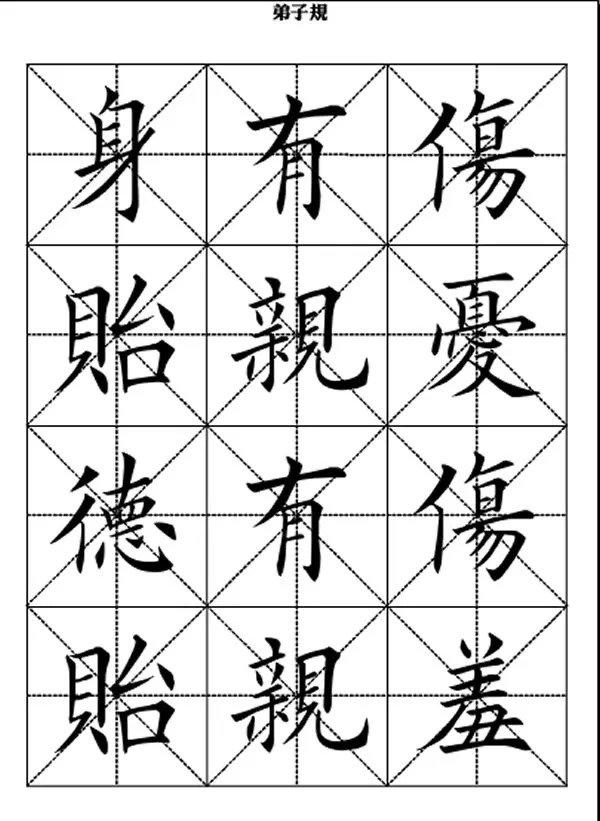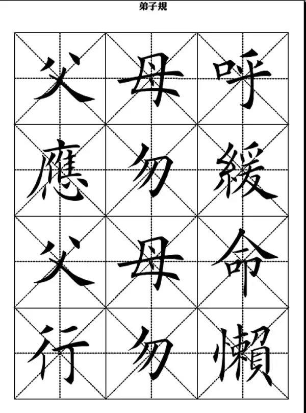 田英章楷书《弟子规》米字格大字版《弟子规》原名《训蒙文》,为清朝康熙年间秀才李毓秀所作。