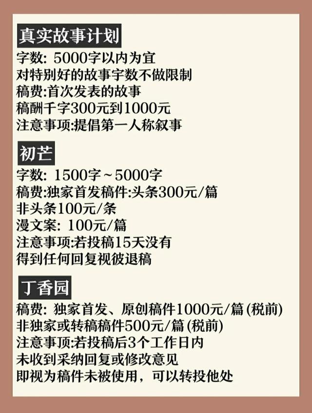 10、真实故事计划稿费:300-1000元/千字(首发)