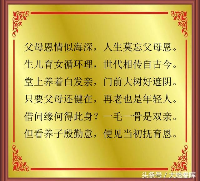 父母恩情深似海,人生莫忘报亲恩。
