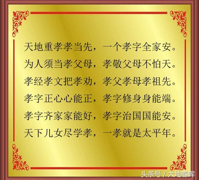 劝君千万孝父母,行孝老天保平安。