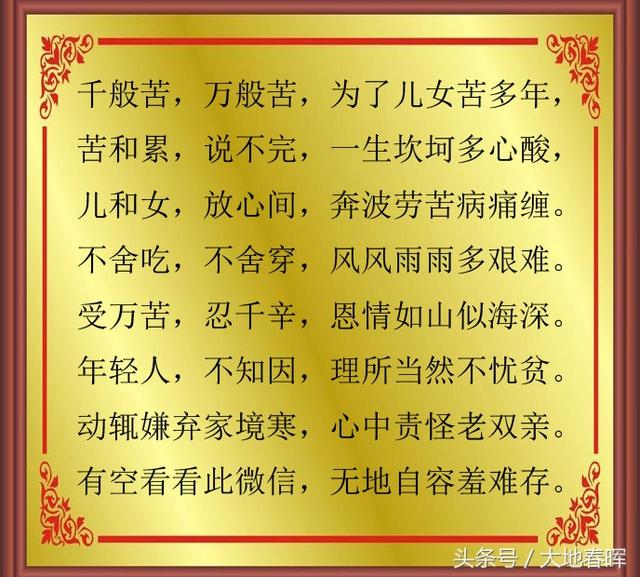 千般苦,万般苦,为了儿女苦多年。