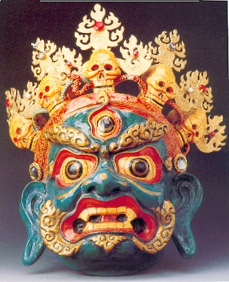 羌姆面具,人们带着威严的面具起舞,仿佛沟通了天上的神灵