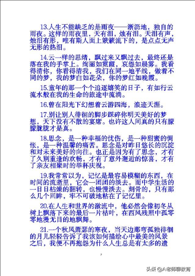如需该套文档打印,关注转发私信回复资料二字即可免费领取中考中加一点经典句子,有时会为作文增色不少,熟读这些句子,深刻理解名句的内涵,在合适的时候应用到作文中,就会有不一样的分数!