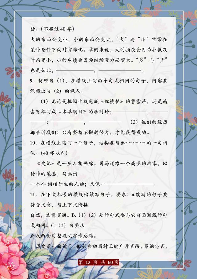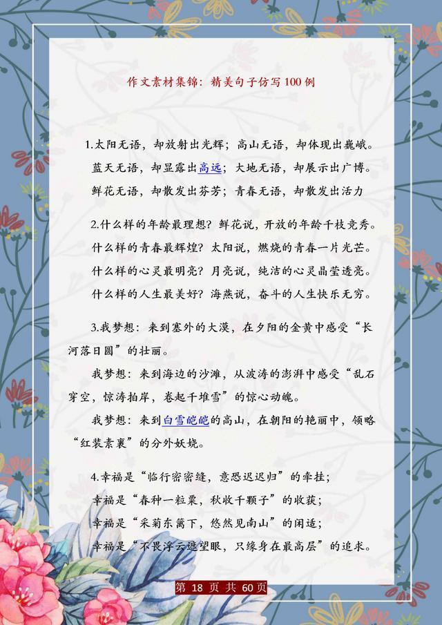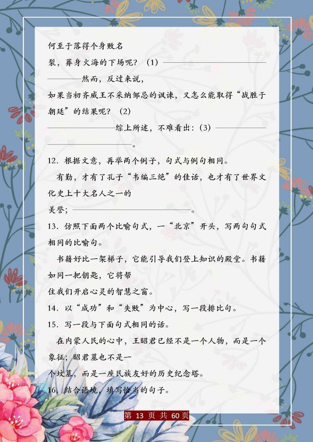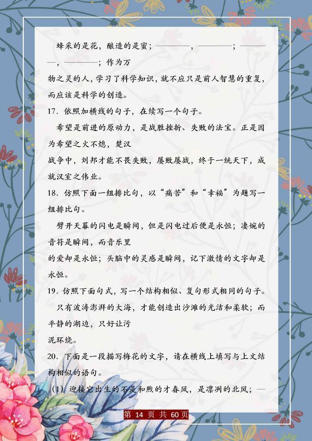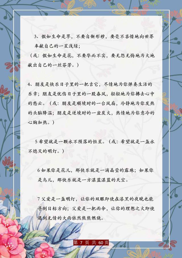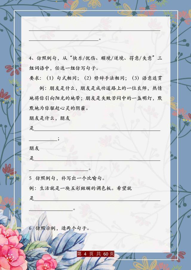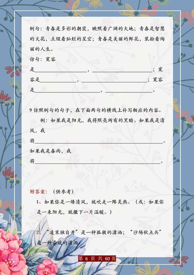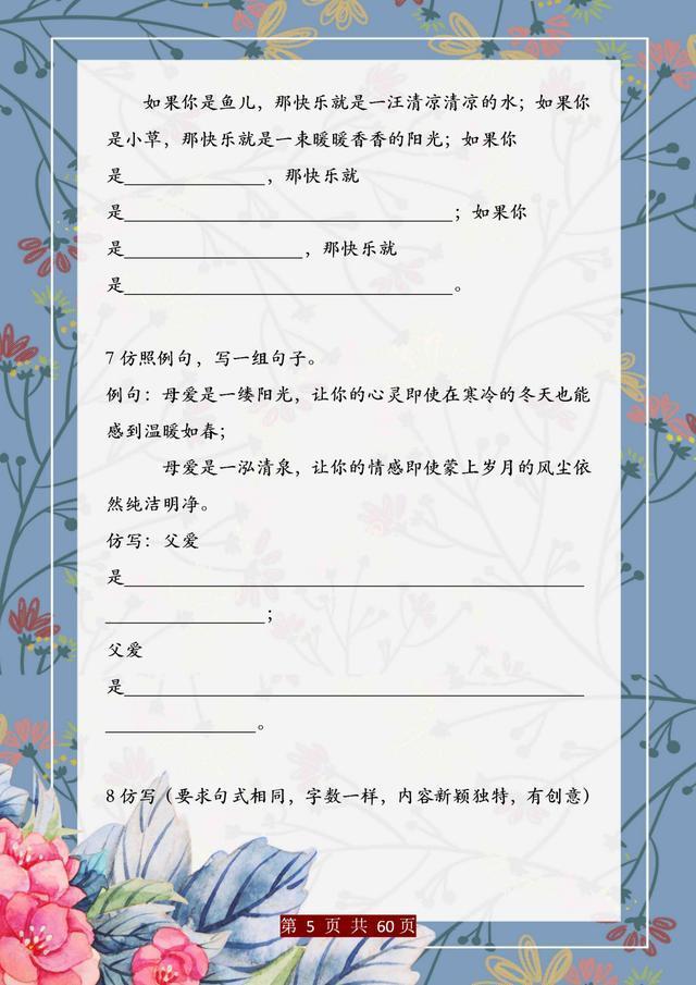 句子仿写是语文基础能力的训练,只有把句子基础知识掌握完善、扎实,后面的学习才能往上走。这份资料,董卿直言:精美句子仿写100例,孩子吃透,哪次考试不能拿第一!相信一定能帮助大家。