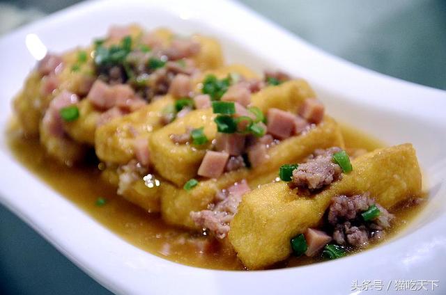 黄金豆腐,色泽金黄诱人,吃起来口感细嫩,豆香浓郁,烹制入味,爱不释手。