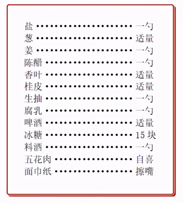 翻炒到猪肉微微出油加生抽两圈 ,腐乳一勺啤酒没过,保持小火盖盖15分钟后夹出姜片香叶桂皮,接着加盐补味,再来点陈醋口感无敌!不用担心,醋和酒在炖的过程中都会挥发掉,只留下美味。