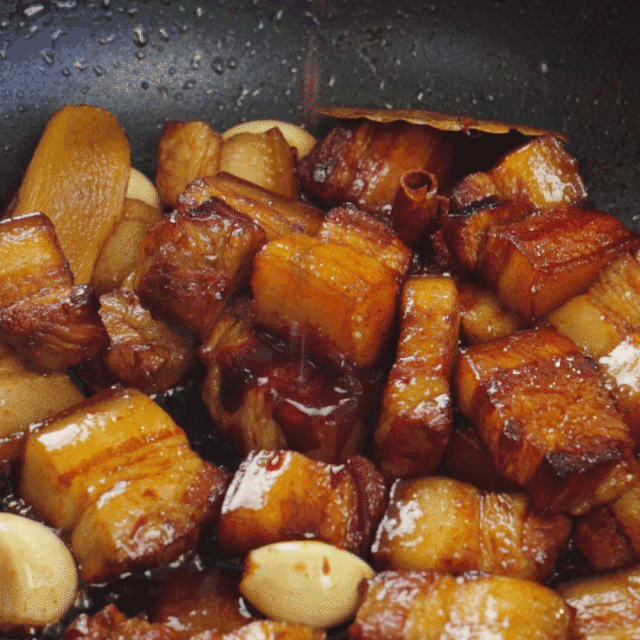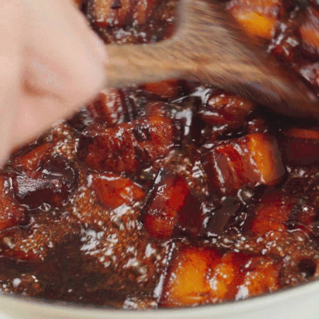 收汁后的红烧肉泛着诱人的焦糖色,肉的鲜香软嫩、入口即化,让味蕾为之沉醉,再配上一口香喷喷热腾腾的米饭,完美!天气正凉,快来一碗热乎乎的红烧肉犒劳你的胃吧~