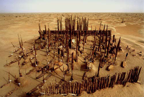 古代中国的墓葬除了悬棺,在新疆孔雀河附近3800年前的楼兰王国,“太阳墓葬”也至为神秘,该地的葬俗是用一组组的七层胡杨木桩围成的同心圆圈,木径粗达30余厘米,整座墓地远远望去,就如一轮镶嵌在戈壁荒原上古老而沧桑的太阳。古代楼兰人为什么要挖掘营建深达两米多的墓穴?为什么要做成如此的同心圆圈图案?墓主人为什么均为仰身直肢面向西方?甚至有人认为,为建造大规模的“太阳墓葬”必须要砍伐大量的林木,楼兰王国也就因此而毁了。