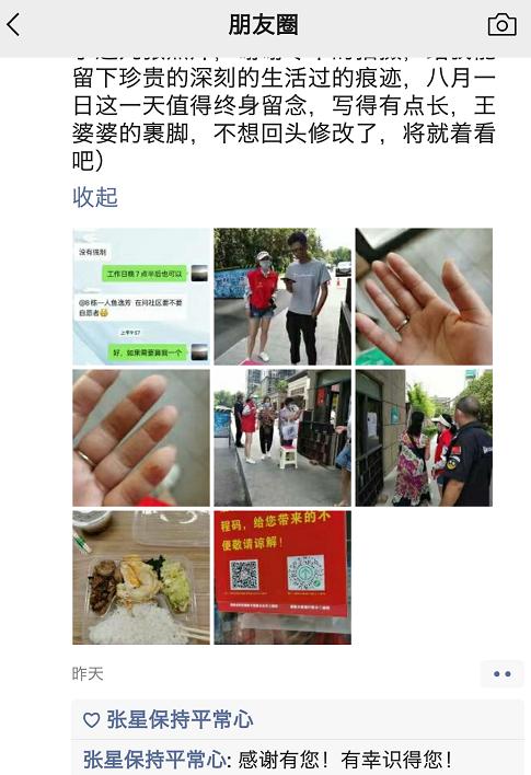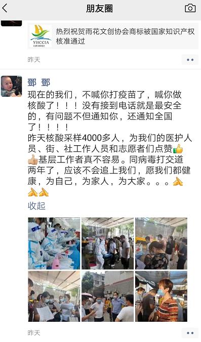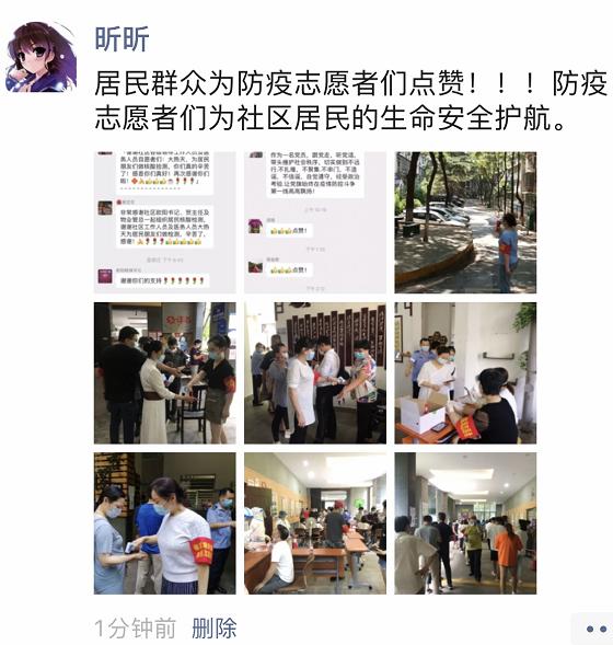 热心市民的朋友圈/热心市民徐贻芳的朋友圈(有节选):洗完澡了,总算是可以在空调房里躺下来安安静静地写我的志愿者经历了,图一是我成为了社区核酸检测活动的志愿者。