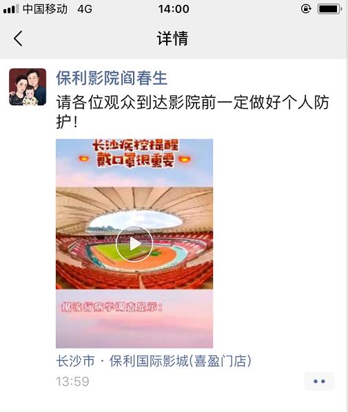 疫情防控,影院积极响应。在保利国际影城内,工作人员积极做好了清洁消杀登记、体温查验等,并加大了对观影现场的巡查力度。