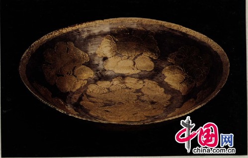 唐朝金器有一个重要的现象,即许多金器上刻有铭文,用于进奉皇帝。这些铭文长短不等,大都用以标明进奉者的地区、官职、姓名,进奉时间、数量等。如西安市北郊坑底村出土的唐代金花银盘,铭文就记录了该盘为裴肃所进奉。